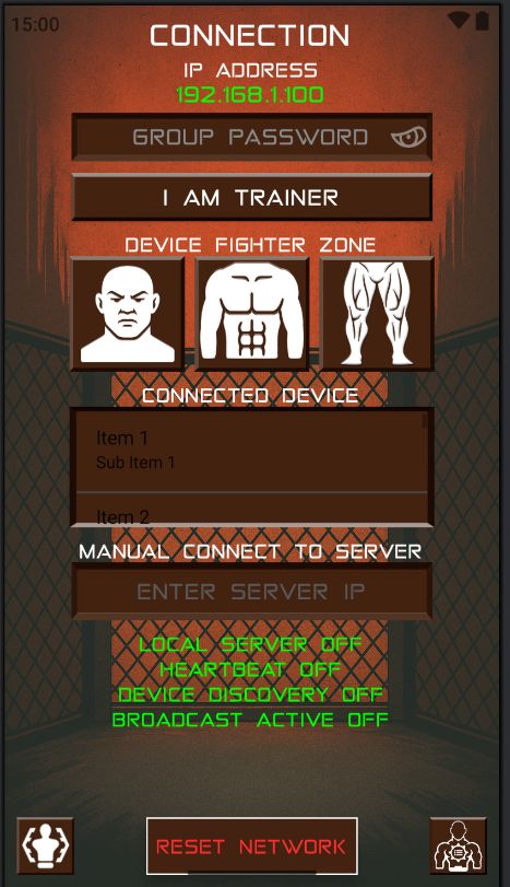 Enter the password that will be used to connect all devices. The password must be the same on the trainer and fighter devices. The password is saved automatically and will be restored at the next app launch.