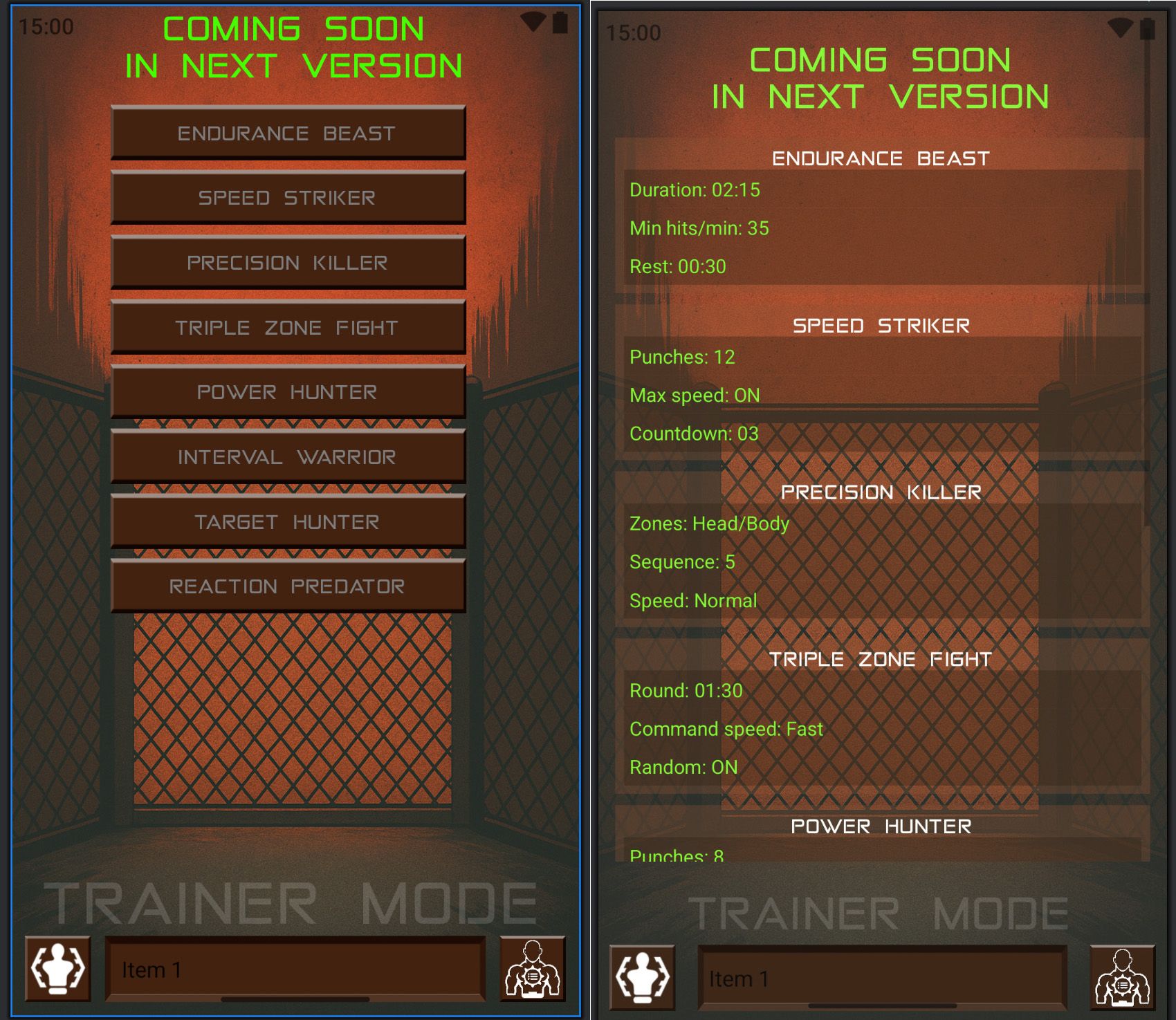 MMA Trainer is suitable for all levels — from beginners to professionals, and for all striking martial arts: boxing, MMA, kickboxing, Muay Thai, karate, taekwondo, and more. You can customize modes and parameters for your training style, goals, and available equipment.